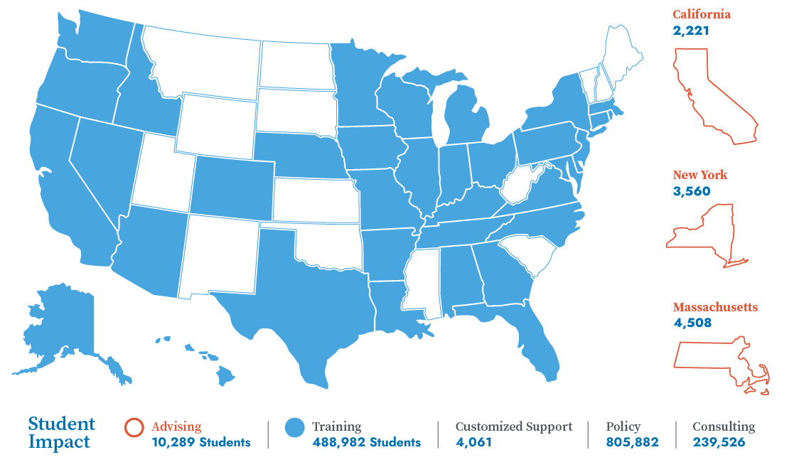 Focusing on students of color, students from low-income communities and first-generation college students, our advising programs are open and accessible to all students regardless of their GPA or postsecondary aspirations.